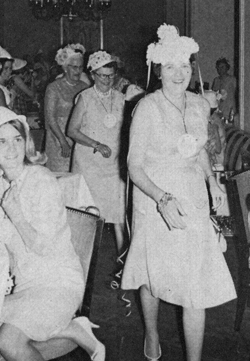 At the Carnation Banquet, retiring Grand President Orra Spencer Reid (Michigan, 1926) was presented with the first white crescent badge set with diamonds. The Helen Dodge Ferguson badge, bequeathed to the Sorority and worn by the Grand Presidents since 1937, had become very fragile. It was now officially retired and placed on display in the Central Office. Unfortunately, the badge was lost in a robbery during the 1980s.