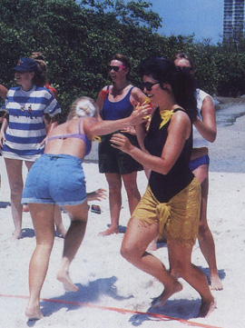 Sisters enjoyed Beach Olympics.