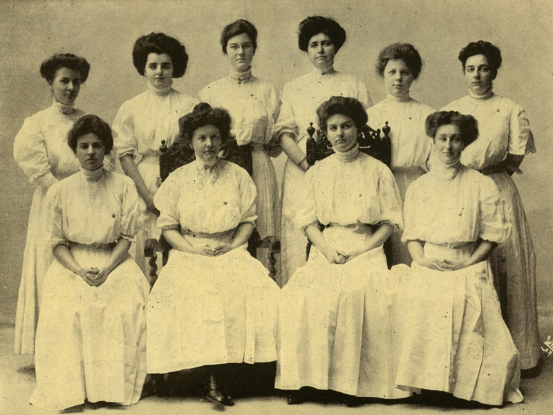 Barnard College was a women’s undergraduate college of Columbia University and met Convention approval for a charter grant. A group of 10 young women were initiated as Iota Chapter (Columbia) charter members by representatives from Alpha Chapter (Syracuse) and Delta Chapter (Boston), aided by alumnae from Syracuse and New York City. The faculty voted to discontinue sororities in 1915 and eight National Panhellenic Conference chapters left the campus.